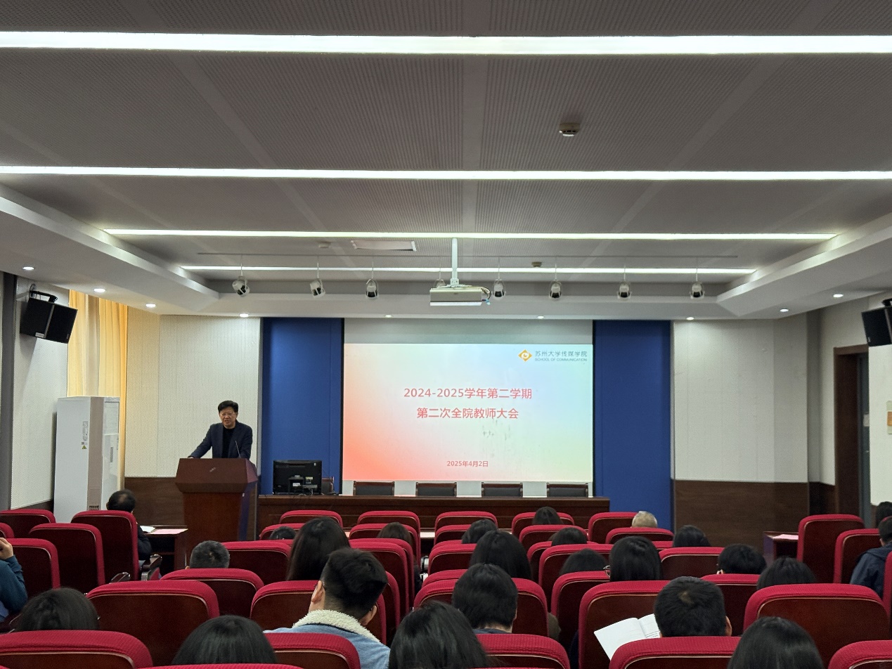 2025年4月2日,冠军体育下载召开2024-2025学年第二学期第二次全院教师大会。会议由学院党委书记张健主持,全体教职工参会。