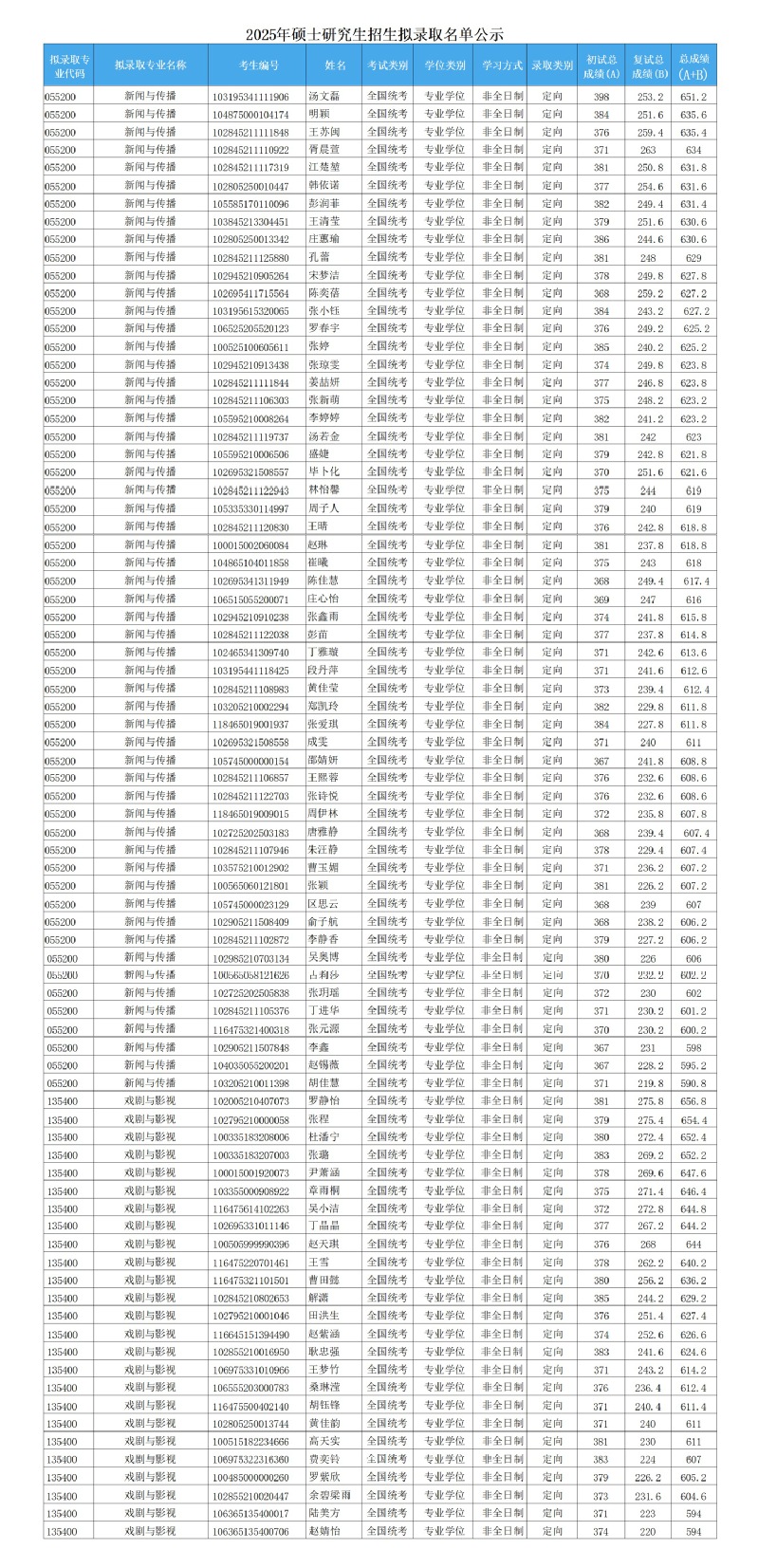 根据有关文件精神,现将我院2025年硕士研究生调剂志愿拟录取名单予以公示。公示期7天,联系电话:65882065,联系人:唐庆华。正式录取名单以江苏省教育考试院和教育部审批为准。附件:传媒学院拟录取名单(调剂)