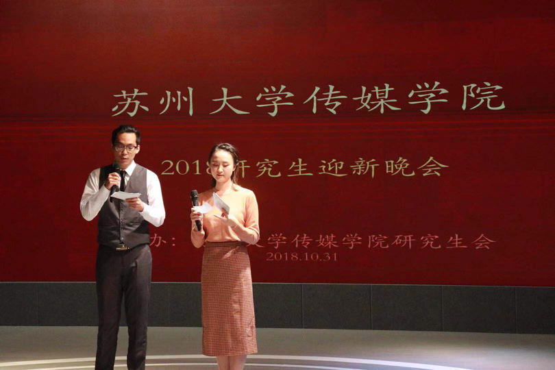 2018年10月31号,传媒学院演播厅热闹非凡。为了表示对2018级研究生新生们的诚挚欢迎,使大家更好地融入传媒学院这一温暖、活泼的大家庭,我们迎来了期待已久的2018传媒学院研究生迎新晚会。出席本次晚会的有:冠军体育下载党委书记宁正法老师、苏州大学传媒学院研究生辅导员花雨老师,苏州大学传媒学院本科生辅导员朱飞老师,另外我们还有幸邀请到了艺术学院贾扬娣老师、金螳螂建筑学院甘露老师、医学部朱一丹老师等兄弟学院的老师们前来莅临观看。