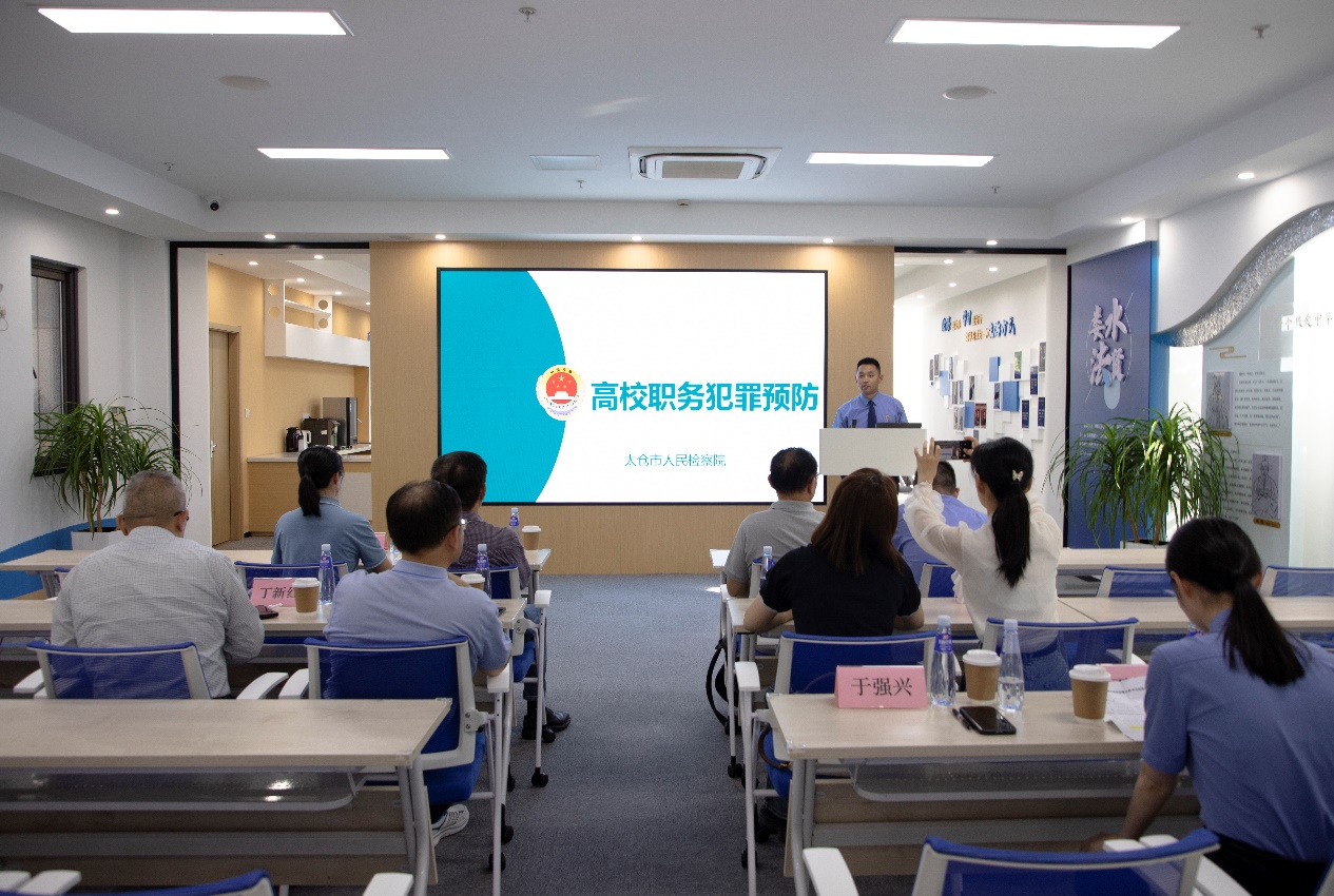 在警示教育环节,党员们观看了太仓市人民检察院干警自编自导自演的警示教育片《选择游戏》。太仓市人民检察院于强兴为党员们讲授了《高校职务犯罪预防》专题党课,他从职务犯罪的构成与类型、高校职务犯罪的特点、招生和科研领域的高校职务犯罪、高校职务犯罪的预防等四个方面进行讲述,针对高校职务犯罪的高发领域,以案释纪说法,并从加强宣传教育、完善管理制度、深化校务公开等三个方面提出预防高校职务犯罪的对策建议。