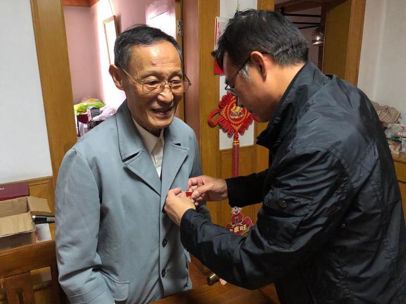 随后,党委书记宁正法为赵根虎老师佩戴荣誉纪念章并合影留念。