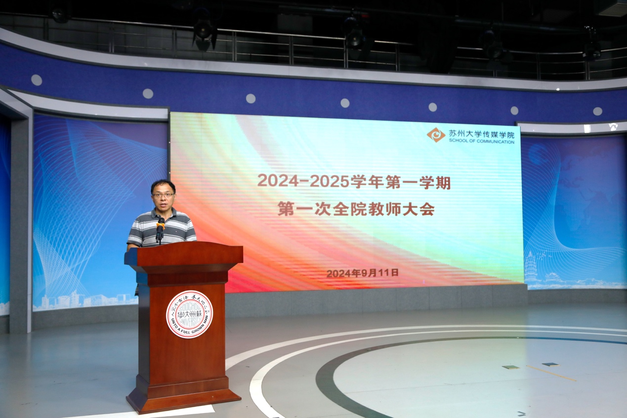 9月11日下午,传媒学院2024-2025学年第一学期第一次全院教师大会在传媒学院大演播厅召开,会议由学院党委书记张健主持。