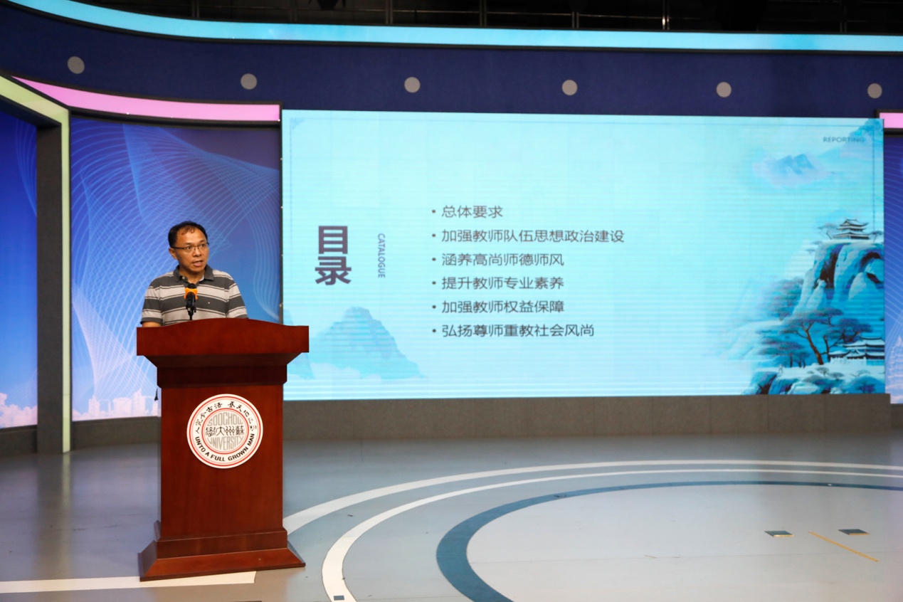 为大力弘扬教育家精神,加强新时代高素质专业化教师队伍建设,进一步营造尊师重教良好氛围,中共中央、国务院近日印发《关于弘扬教育家精神加强新时代高素质专业化教师队伍建设的意见》,张健书记从总体要求、加强教师队伍思想政治建设、涵养高尚师德师风、提升教师专业素养、加强教师权益保障、弘扬尊师重教社会风尚等六个方面展开介绍了《意见》的主要内容。张健书记指出,全院教师要学习贯彻好习近平总书记在全国教育大会上的重要讲话精神,深刻领悟《中共中央 国务院关于弘扬教育家精神加强新时代高素质专业化教师队伍建设的意见》要义,注重学习与解决实际问题相结合,扎实推进学院各项工作有序开展。