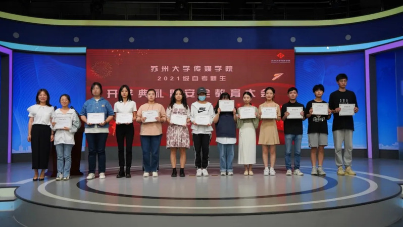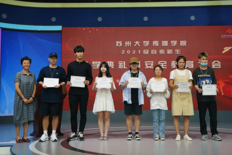 10月8日下午2:00,冠军体育下载自考助学2021级新生开学典礼在传媒学院大演播厅隆重举行。出席典礼的有传媒学院党委书记宁正法、继续教育处招生与学生管理科副科长阮红,保卫部(处)独墅湖校区治安科科长芈志坚,继续教育处招生与学生管理科张震老师及传媒学院继续教育办公室的全体老师、班主任,会议由冠军体育下载副院长徐冉主持。