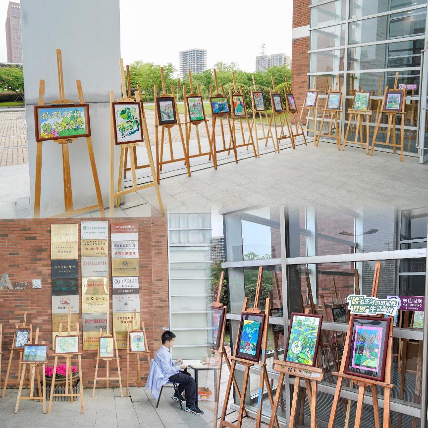 与此同时,苏州中学园区校的小朋友们以“双碳”为主题进行的绘画创作,展示了他们对于绿色、低碳生活的理解和想象。