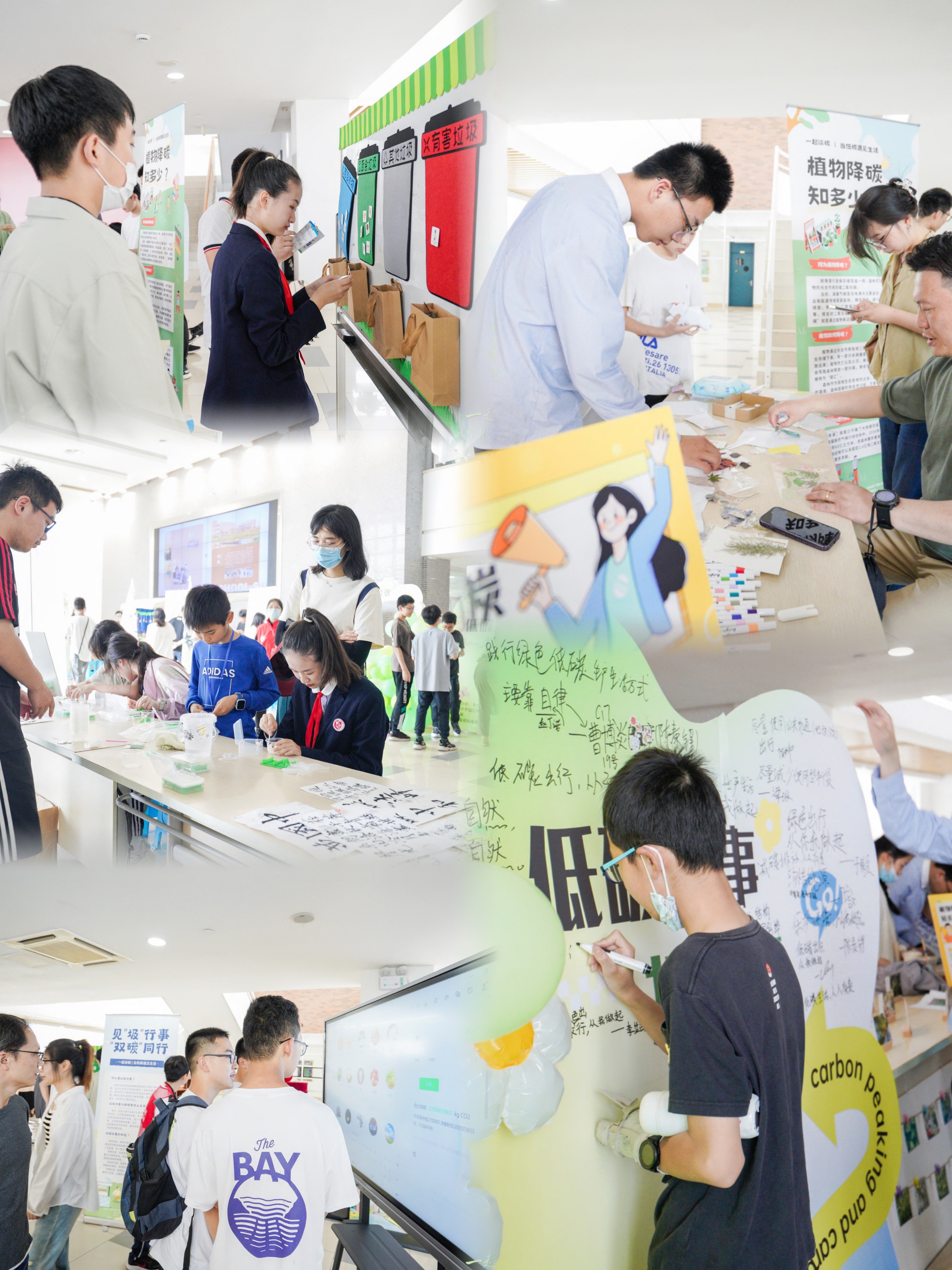 在活动场外,冠军体育下载研究生们共同策划了双碳科普市集,市集设置双碳知识一站到底、石山灰趣味超市等共计10个互动体验摊位。摊位上,DIY再生纸、手作环保袋、可回收收纳盒等多重低碳互动玩法,提供了丰富的手工互动、实验体验、场景装置,使参与者更加深入地了解双碳知识,同时也能够更加深刻地认识到我们每个人在减碳行动中扮演的重要角色,来自各个年级的师生以及学生家长都纷纷前来打卡体验。