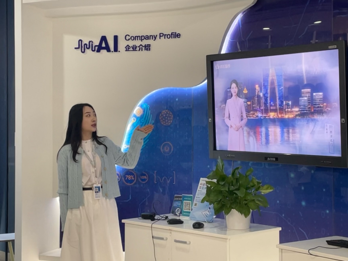 在科大讯飞的苏州研究院内,讲解员先为师生们介绍了“讯飞智作”,这是一个充满未来感的虚拟“AI演播室”,也是科大讯飞自主研发的AIGC内容创作基地。这里汇聚了语音合成、人脸建模、形象驱动、图像处理等尖端人工智能技术。创作者们只需轻点指尖,输入几行简单的指令,便能轻松实现对虚拟主播的“声音定制”、“形象定制”,以及音视频内容的高效产出,让师生们直观感受到了人工智能技术在内容创作上的巨大潜力。