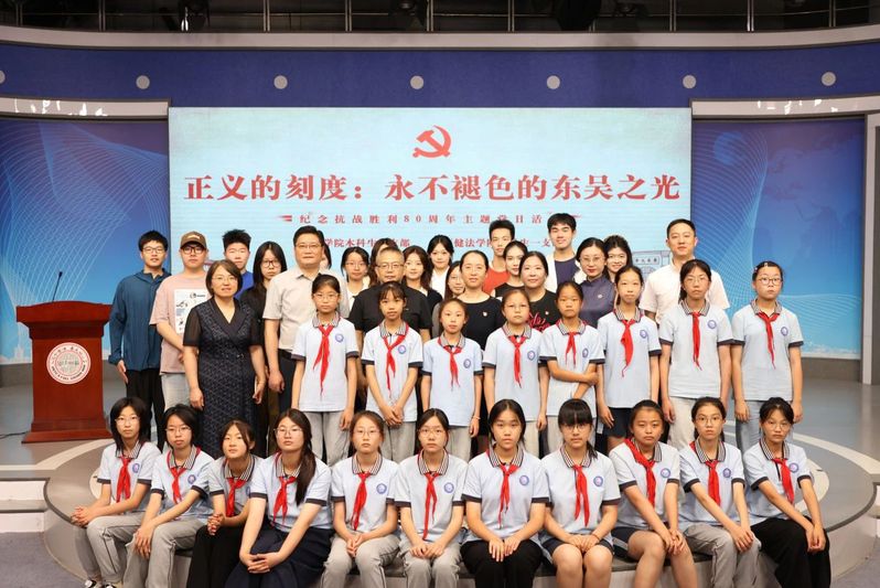 为纪念中国人民抗日战争暨世界反法西斯战争胜利80周年,6月18日下午,“正义的刻度:永不褪色的东吴之光”纪念抗战胜利80周年主题党日活动在传媒学院演播厅举行。本次活动由传媒学院本科生党支部与王健法学院本科生一支部联合主办,旨在共同回顾东吴大学10名校友参与东京审判的往事,感悟东吴法学精神和先辈们的家国情怀与使命担当。传媒学院党委副书记、副院长丁姗出席本次活动,传媒学院和王健法学院部分师生党员、入党积极分子以及苏州市相城区蠡口实验小学的30名小学生一同观摩了本次活动。本次党日活动还特别邀请了王健法学院96级校友孙凡、苏大博物馆开放与公共服务部主任戴颖参与分享环节。