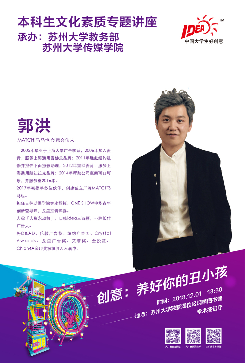 本科生文化素质专题讲座:创意 养好你的丑小孩