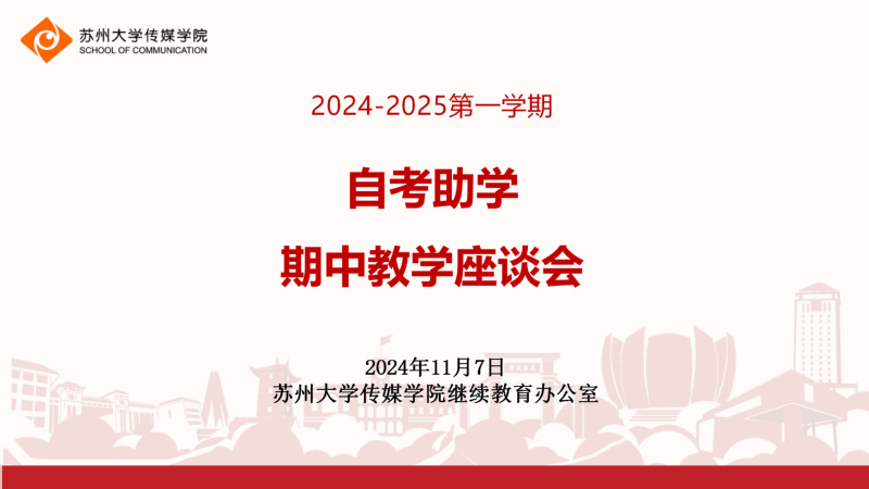 期中教学座谈会是评估教学质量和学生学习效果的重要环节。11月7日下午,在校督导老师的指导下,传媒学院2024-2025第一学期自考助学期中教学座谈会顺利开展。校督导老师王六一,传媒学院副院长黄艳凤,继续教育办公室老师魏巍、周建军、张雯、亓雪,2023级、2024级各班班委、学生代表等56名同学参加座谈会。