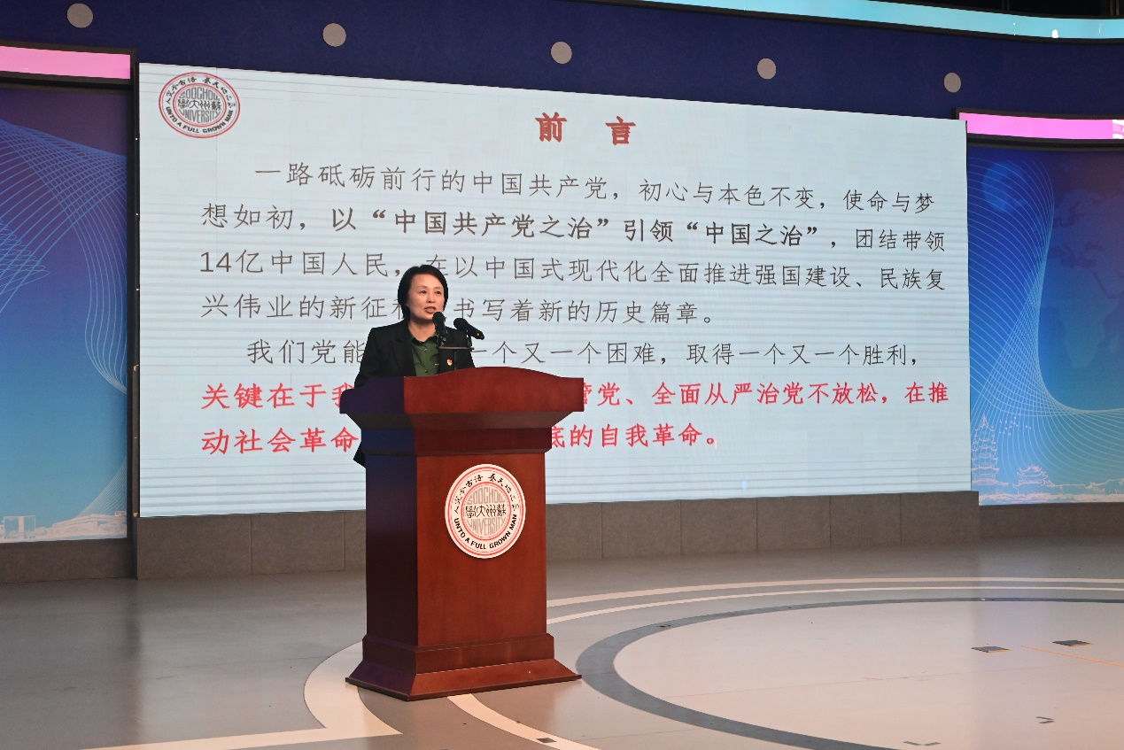 陶培之以“严明纪律规矩 纵深推进全面从严治党 在服务高质量发展大局中担当作为”的主题,主要围绕“新时代全面从严治党的新要求”“高校领域反腐败的严峻形势”“严守纪律规矩、涵养清风正气的重要性”三个方面展开讲授。着眼于如何贯彻落实新时代全面从严治党的新要求,陶培之详细阐述了党的二十大报告对全面从严治党的部署,包括坚持和加强党中央集中统一领导、完善党的自我革命制度规范体系等在内的七个方面,强调了全面从严治党对于确保党永远不变质、不变色、不变味的重要意义。她重点剖析了高校领域反腐败的严峻形势,通过列举高校腐败案例指出了腐败的本质和危害,以及高校反腐败斗争的复杂性和长期性。最后,陶培之重点阐述了严守纪律规矩、涵养清风正气的重要性,她通过大量实际案例形象地讲述了违反纪律规矩所带来的严重后果,同时强调党纪国法对于党员干部的刚性约束,以及加强党性党风党纪教育、传承党的光荣传统和优良作风的紧迫性和必要性。