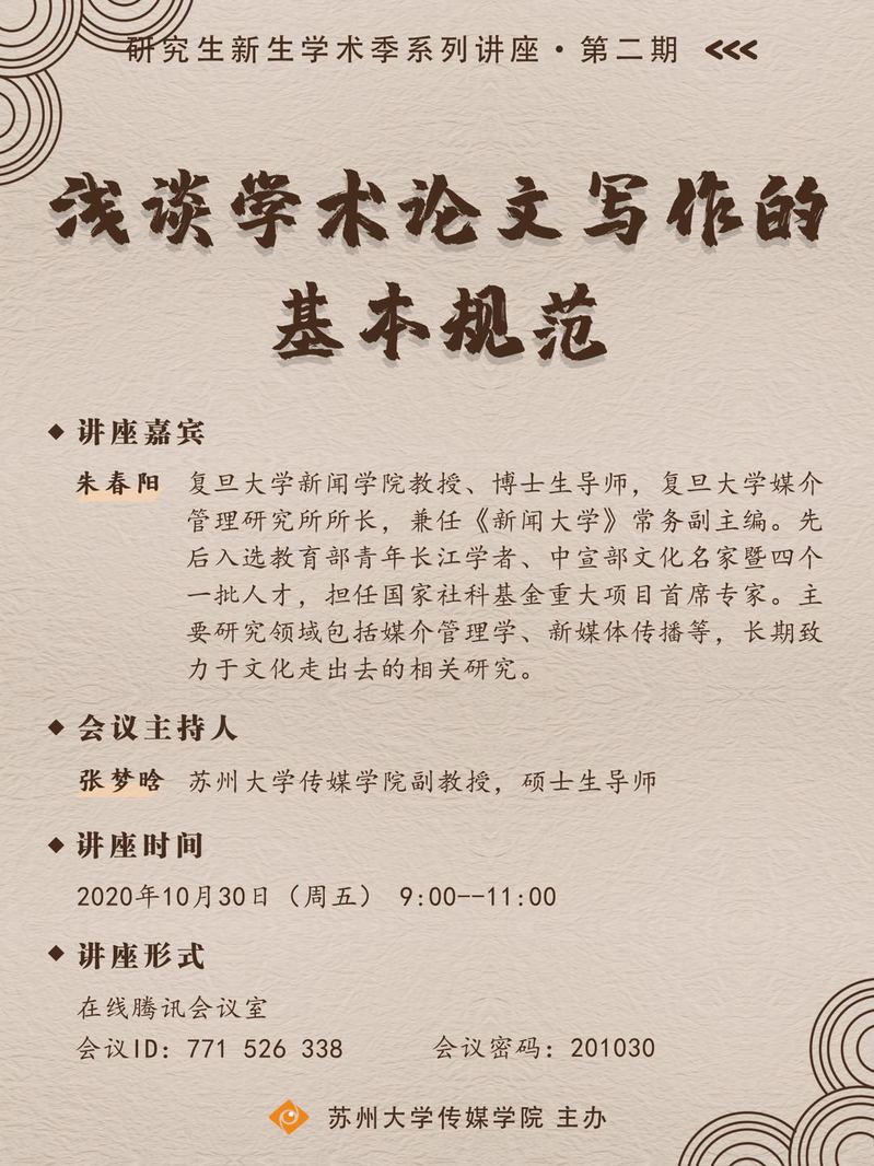 研究生新生学术季系列讲座(第二期):浅谈学术论文写作的基本规范