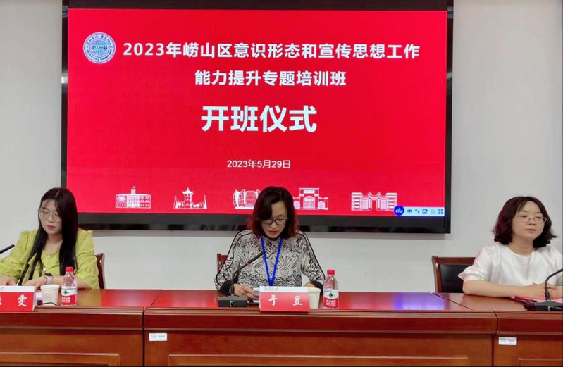2023年5月29日上午,2023年崂山区意识形态和宣传思想工作能力提升专题培训班开班仪式在我校培训教室101举行。来自崂山区驻区高校、区直单位、驻区企业、村(社区)、中小学校等宣传系统干部约70名学员参加了本次开班。崂山区委宣传部副部长,区新闻办主任,区网信办主任于昱同志、苏州大学管理培训学院副院长黄艳凤同志出席了此次开班典礼。