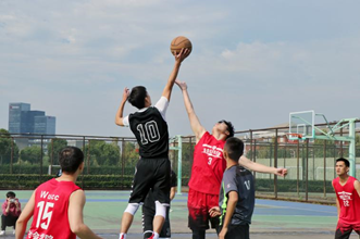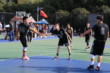 在上午场比赛开始之前,各队队员身穿统一队服,早早来到球场进行热身。在9:30的第一轮对决中,材料与化学化工部、机电工程学院、东吴商学院以及体育学院在经过激烈角逐后晋级4强。其中东吴商学院与功能纳米与物质研究院的对战异常胶着,在前半场落后对方的情况下,东吴商学院紧追不舍,双方比分一直到第四节依然难分高下,在经历了第一轮唯一一个加时赛之后,以38:37的成绩险胜,整场比赛高潮迭起,惊心动魄,可谓第一轮中当之无愧的一场硬仗。