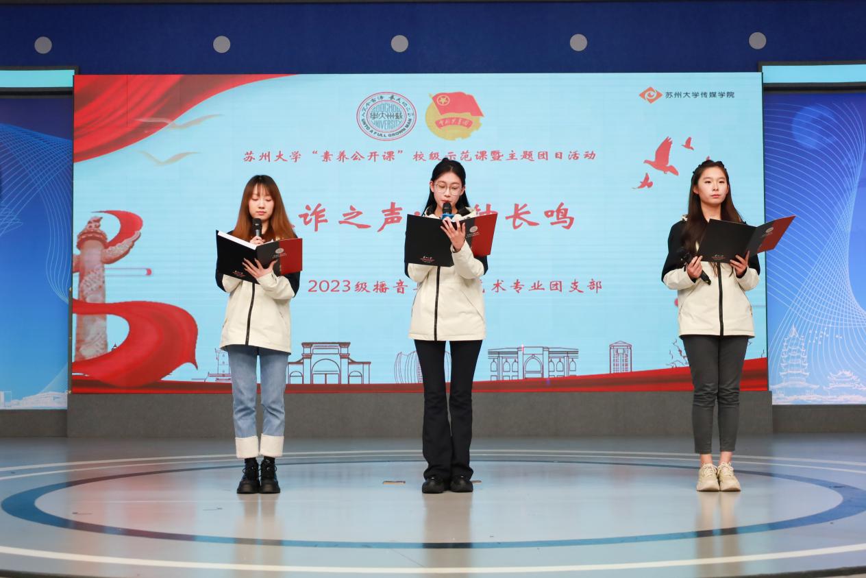 讲座环节结束后,传媒学院2023级播音与主持艺术专业团支部带来激昂有力的朗诵《反诈之声:警钟长鸣》。三位同学用饱含力量与真挚情感的声音再度敲响反诈的警钟,将反诈的重要性和紧迫性传递到每位师生的心中,激发了师生共同守护校园安全的决心。