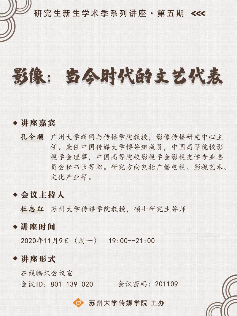 研究生新生学术季系列讲座(第五期):影像:当今时代的文艺代表