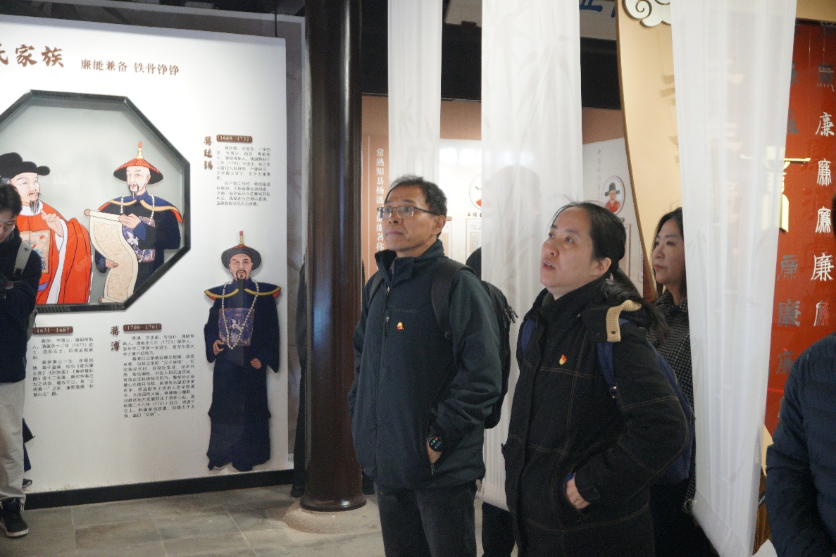 当日上午,党员们来到常熟市方塔园廉吏馆进行参观。廉吏馆以历史上在常熟任职或常熟籍在外地任职官吏的勤廉事迹为主线,内设六大展区展示常熟廉洁文化。山水蕴正气,君子传清风。在常熟方塔园廉吏馆,党员同志们先后参观了贪欲警示砖雕照壁、厉廉堂、养德轩、廉政文化走廊及反腐倡廉警示教育馆,详细了解了24位古代清官廉吏的故事以及近现代革命建设时期的英烈和劳动模范的先进事迹。通过参观,党员们感受到源远流长的廉政文化的深刻底蕴,更坚定了廉政为民的行动决心。古今廉对话,绵延润晴川。只有深刻了解廉政历史,才能对今天身为党员的廉洁自好之要求愈加认同。