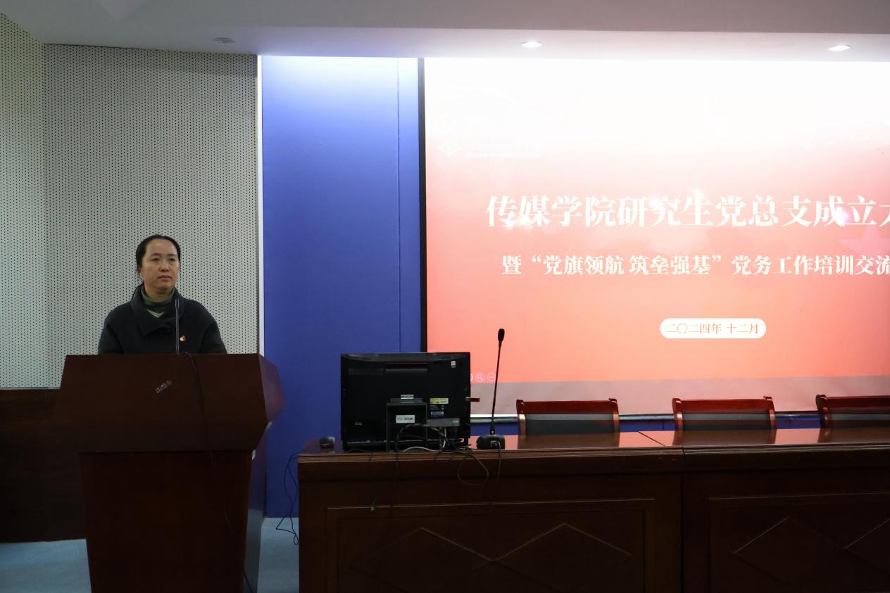 为进一步优化传媒学院党组织结构,提升传媒学院研究生党建工作水平,充分发挥研究生党组织的战斗堡垒作用和研究生党员的先锋模范作用,2024年12月12日,传媒学院研究生党总支成立大会暨党务工作交流大会在学院5148会议室顺利召开。本次大会由传媒学院党委副书记、副院长丁姗主持,校党委组织部党员教育管理科科长吴常歌,纳米科学技术学院研究生党总支书记孙宇慧,王健法学院本科生一支部书记单杰,传媒学院党委书记张健,研究生辅导员汪令昕,传媒学院各支部书记、支部委员以及全体研究生党员出席本次会议。