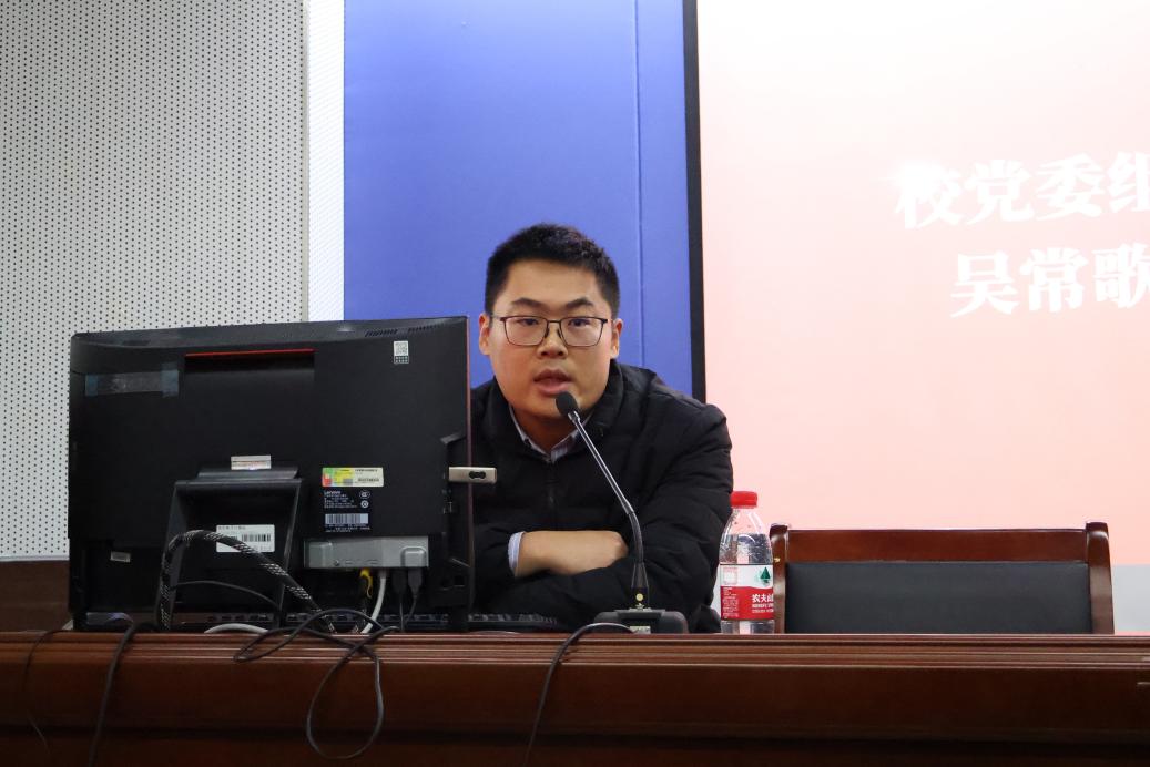 接着,“党旗领航 筑垒强基”党务工作培训交流会正式开始。校党委组织部党员教育管理科科长吴常歌以“落实重点任务 建强战斗堡垒”为主题进行党务工作交流分享。吴常歌科长指出,要答好党建工作基础题,落实“三会一课”等各项组织生活制度,坚决杜绝形式化,做好各类党员管理工作,对毕业生、出入境及流动党员进行有效管理;答好引领发展“综合题”,推动党建与业务深度融合;答好品牌打造“附加题”,打造一支具有特色品牌的支部。吴科长通过分享我校优秀党支部案例,为我院党建工作提供思路。