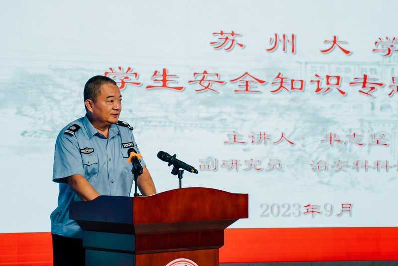 校园安全大于天。学院邀请保卫部(处)独墅湖校区治安科芈志坚科长为新生开展安全教育。芈志坚从校园安全角度展开,全面讲述了国家安全、消防安全、交通安全、防溺水、防“盗窃”、网络电信诈骗、校园贷等九个方面的重要内容,同时结合现实案例,带领同学们详细认识校园生活中潜在的安全隐患,呼吁同学们养成良好习惯,增强自我保护意识,提高警惕,保护人身安全。