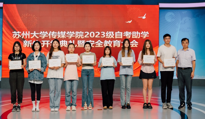 本次开学典礼,还公开表彰了获得等级奖学金、优秀学生干部、优秀学生等荣誉称号的2022级自考学生,并为他们颁发荣誉证书。鲜衣怒马少年时,不负韶华行且知。希望来到传媒学院读书的每一位自考助学学子,都能学有所得、学有所成,实现梦想!