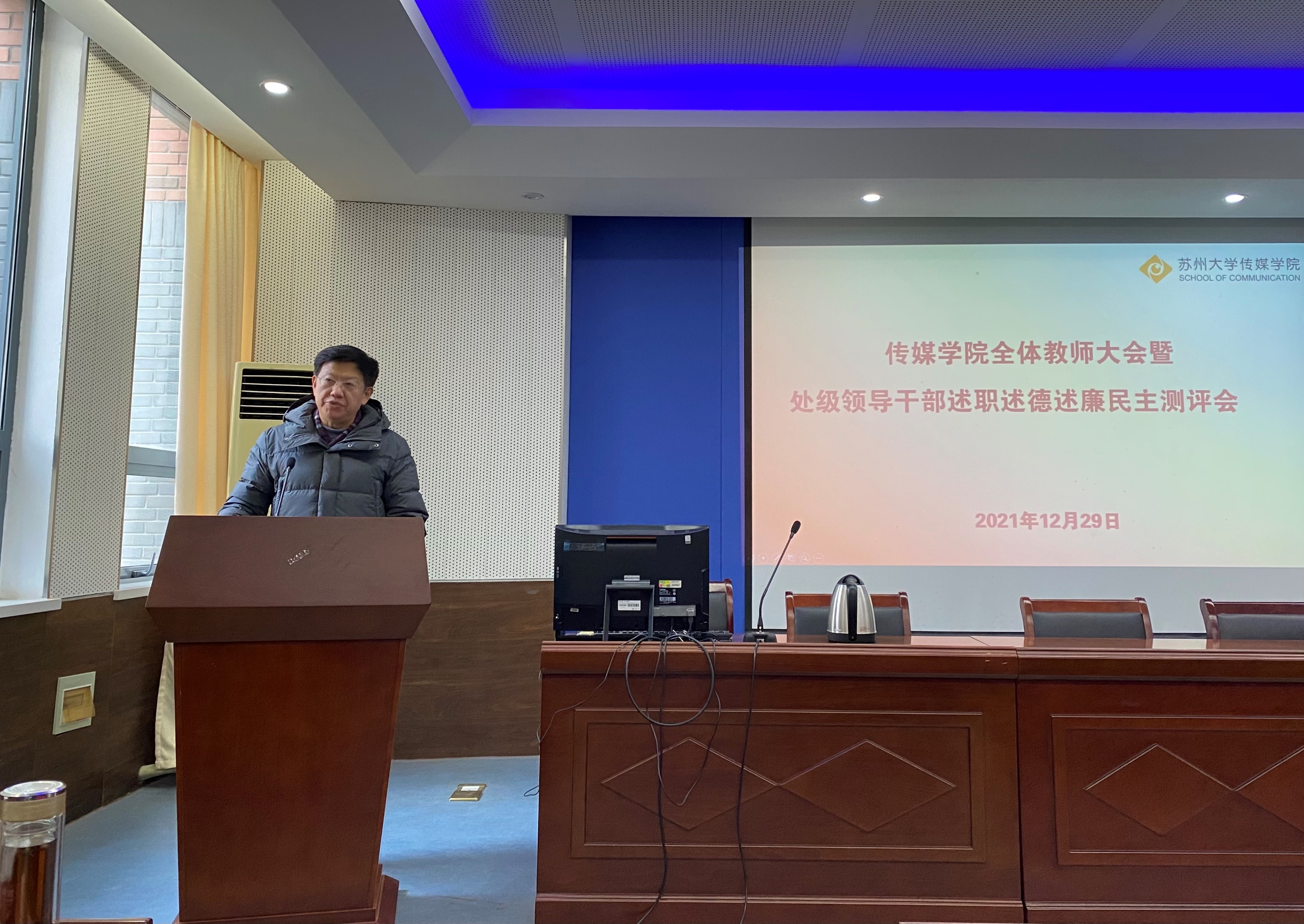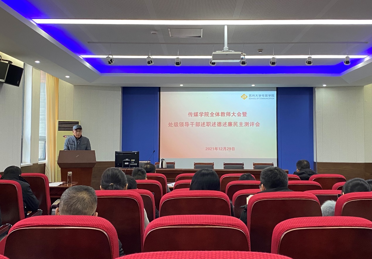 2021年12月29日下午,传媒学院于1005幢5148教室召开全体教师大会暨处级领导干部述职述德述廉民主测评会。