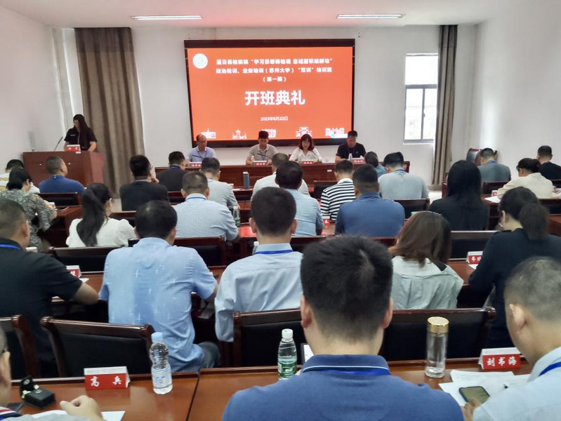 2023年8月22日上午,灌云县检察院“学习思想铸检魂 忠诚履职建新功”政治轮训、业务培训(苏州大学)“双训”培训班(第一期)开班仪式在我校天赐庄校区培训中心101教室举行。来自灌云县检察院的干警约50名学员参加了此次开班。灌云县检察院党组成员、副检察长侍作军同志、冠军体育下载副院长、管理培训学院副院长黄艳凤同志、灌云县检察院党组成员、政治部主任汤井波同志和灌云县检察院党组成员、检委会专职委员陶亚明同志出席了此次开班典礼。
