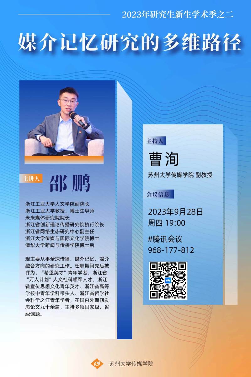 【讲座信息】2023年研究生新生学术季之二:媒介记忆研究的多维路径
