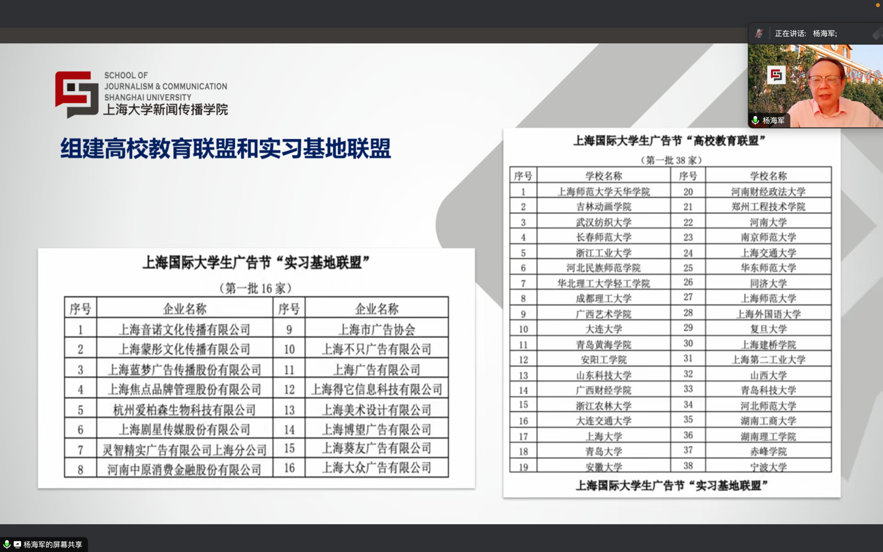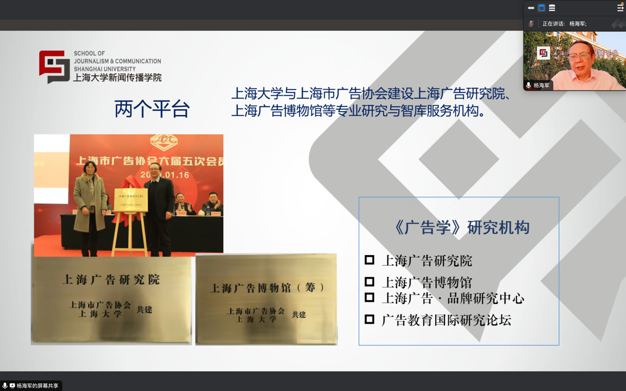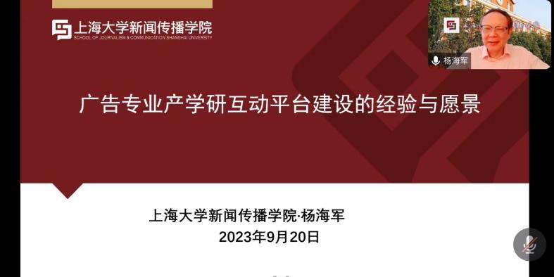 9月20日下午,数智广告与品牌传播前沿讲座第三讲——“广告专业产学研互动平台建设的经验愿景”在冠军体育下载线上腾讯会议室如期举行。