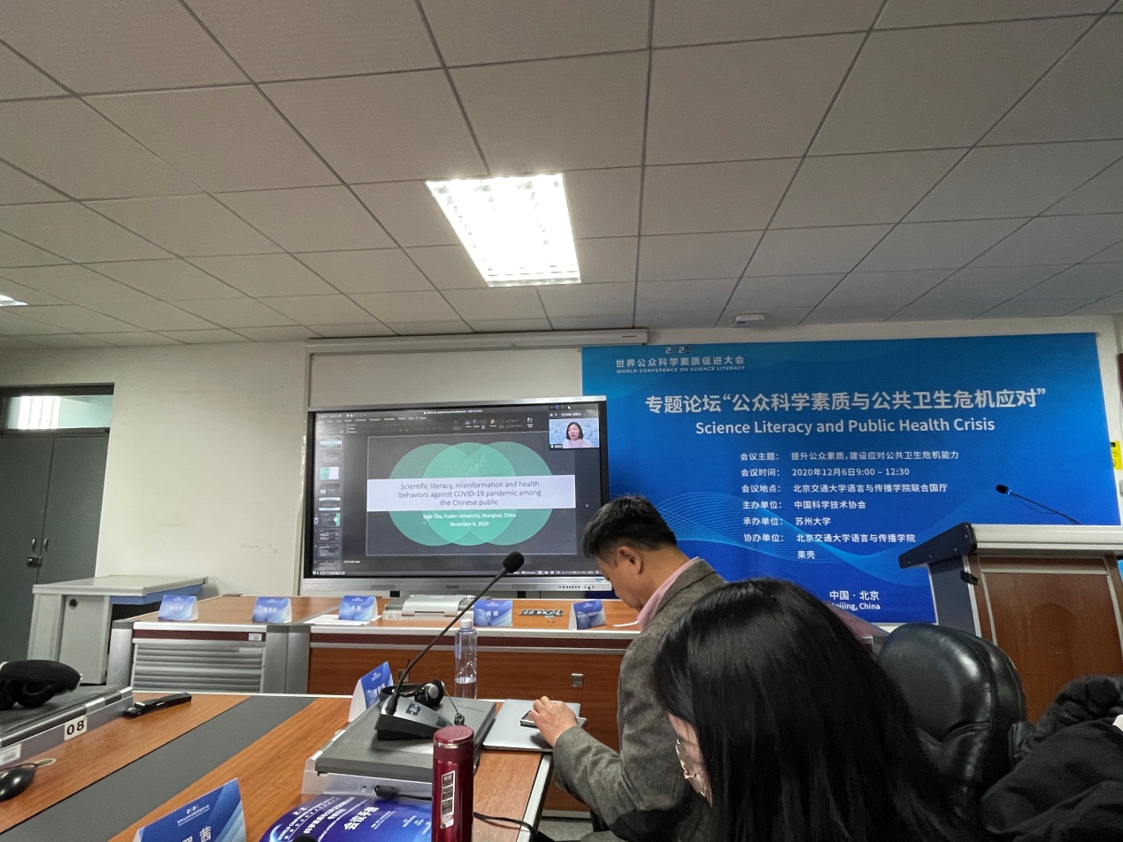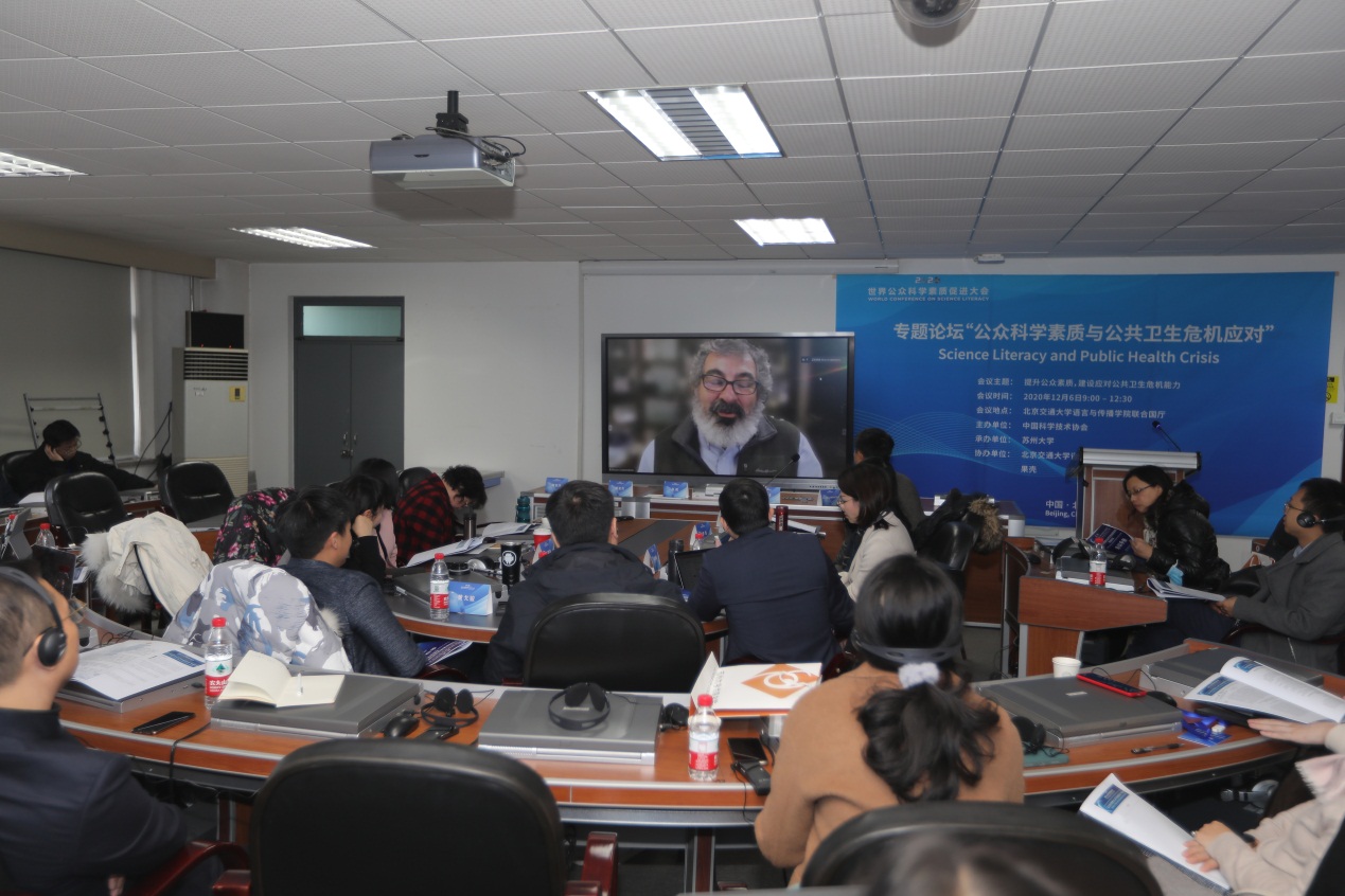 2020世界公众科学素质促进大会“公众科学素质与公共卫生危机应对”专题论坛在北京交通大学语言与传播学院联合国厅现场与在线同步举行