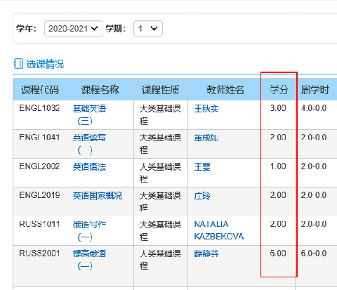 1.各年级学生2020-2021学年第一学期所选重修课程学分清单见附件1。学生也可登录学生园地(信息查询→学生选课情况查询,如图1、2)认真核对。