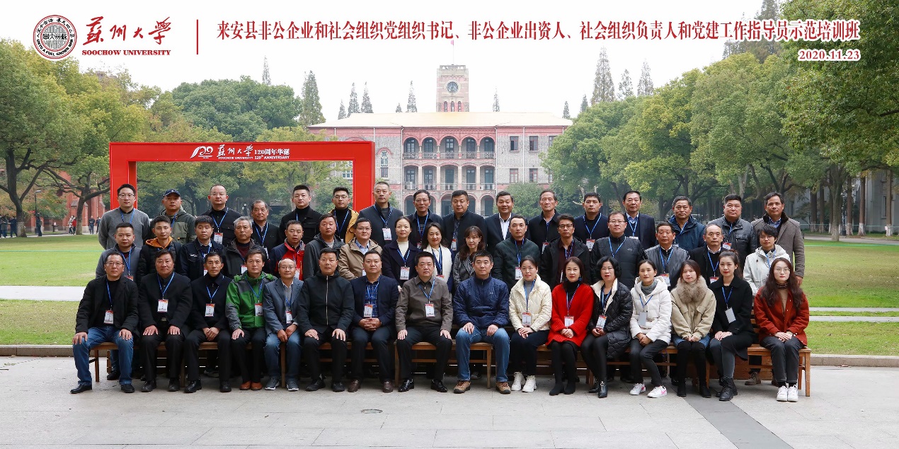 2020年11月23日下午,安徽省来安县非公企业和社会组织党组织书记、非公企业出资人、社会组织负责人和党建工作指导员示范培训班在我校培训中心106教室举行开班仪式。来安县委组织部副部长、县委非公工委书记、三级调研员俞武彪、苏州大学干部学院副院长徐冉、苏州大学干部培训学院调研员王苏光出席开班式。