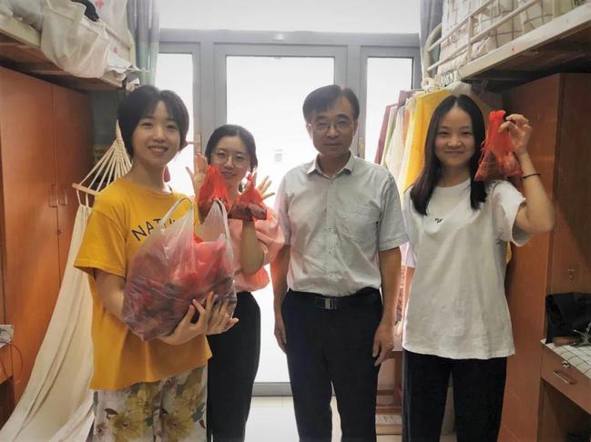 农历五月,端午节悄然而至。值此之际,为关怀学生学习生活状况,6月19日下午,冠军体育下载党委书记宁正法老师,副书记、副院长宋海英老师,学工办主任宋智老师,团委书记王雁冰老师和2018级辅导员朱飞老师一同走进学生宿舍慰问在校同学,给大家带去装有粽子和咸鸭蛋的端午小礼包并致以节日的问候和祝福。