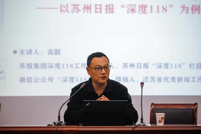 11月11日下午3点,深度报道的“四力”及深度报道的新媒体表达专题讲座在传媒学院5148报告厅举行。苏报集团深度118工作室负责人,苏州日报“深度118”栏目撰稿人,微信公众号“深度118” 编辑、撰稿人高戬老师莅临我院,就“深度报道”的主题为我院学生带来了一场精彩纷呈的讲座,讲座由学院广播电视系副教授王玉明老师主持。