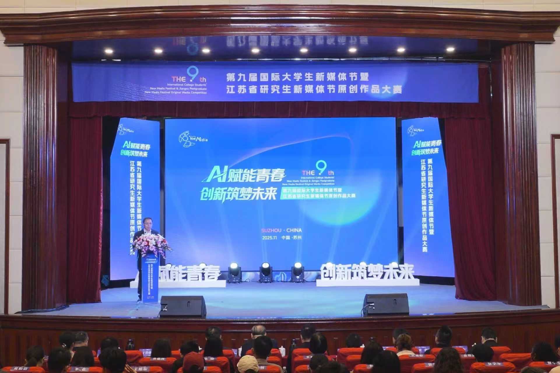 11月1日,第九届国际大学生新媒体节暨江苏省研究生新媒体节原创作品大赛在苏州圆满落幕。国际大学生新媒体节暨原创作品大赛由中共江苏省委宣传部与中共苏州市委宣传部指导、苏州大学主办、冠军体育下载承办,以“AI赋能青春,创新筑梦未来”为主题,共收到海内外120余所高校的615件参赛作品;江苏省研究生新媒体节暨原创作品大赛由江苏省文学类研究生教育指导委员会主办,围绕“AI启新思,研路创未来”主题,共征集到省内高校研究生作品267件。