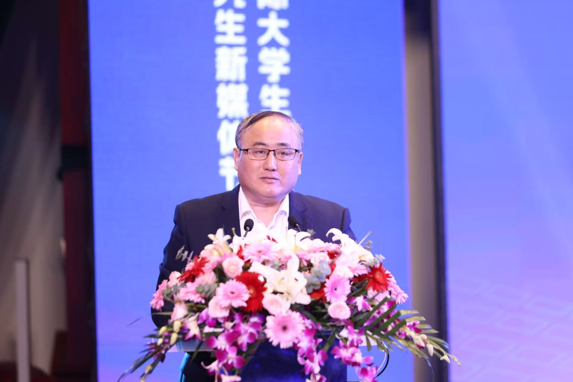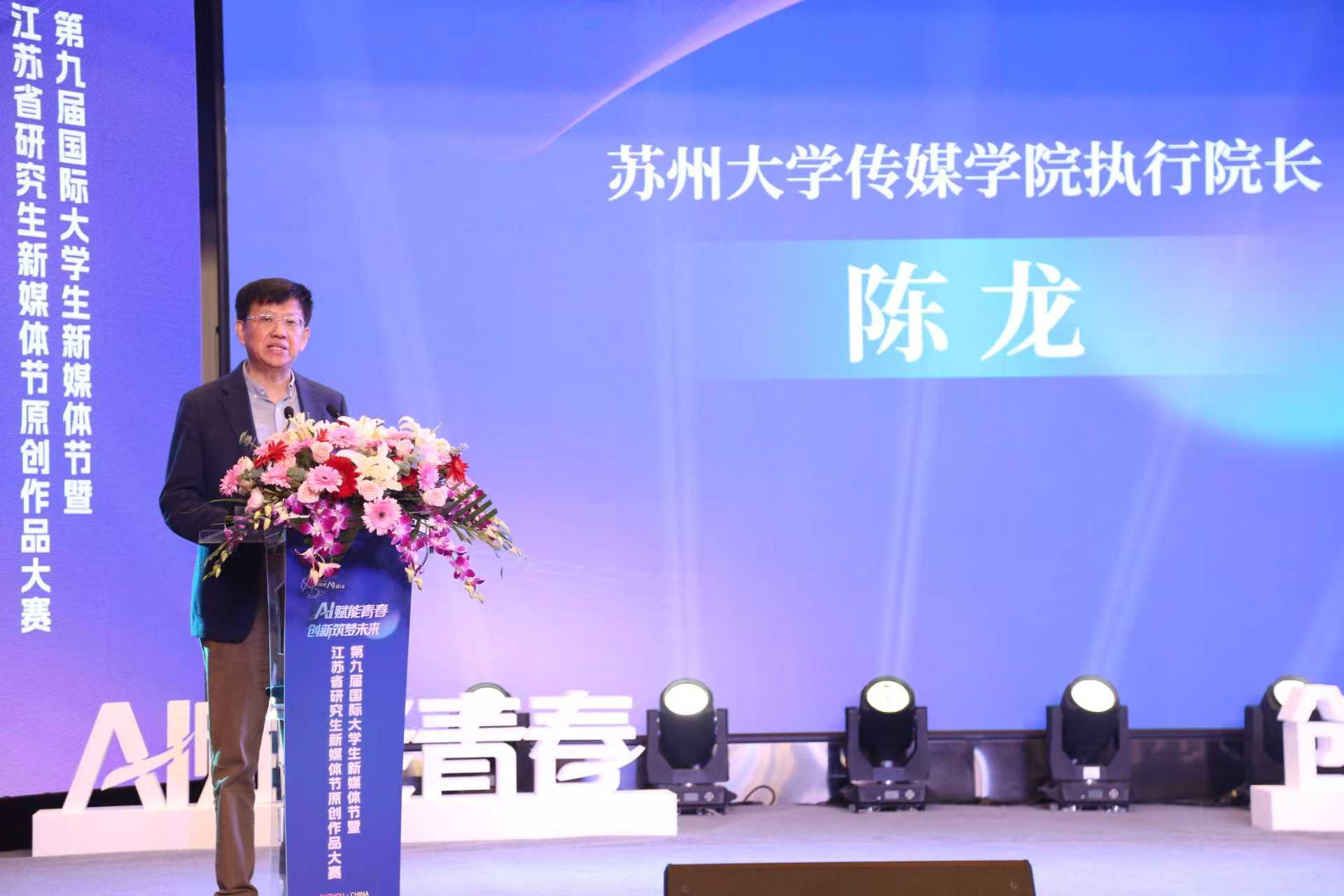 张健主持开幕式,陈龙致欢迎辞。陈龙指出,新媒体节是思想交流、才华展示与人才发掘的重要平台,强调创新是新媒体时代的关键,智能化、碎片化、去中心化已成为当今趋势。他强调,新媒体时代的创业不是投机,而是需要大胆创新、勇于担当、善于开拓。他鼓励青年大学生们要对中国迈向AI赋能的新媒体产业大国充满信心,不忘初心、努力奋发,共创中国新媒体的辉煌未来。