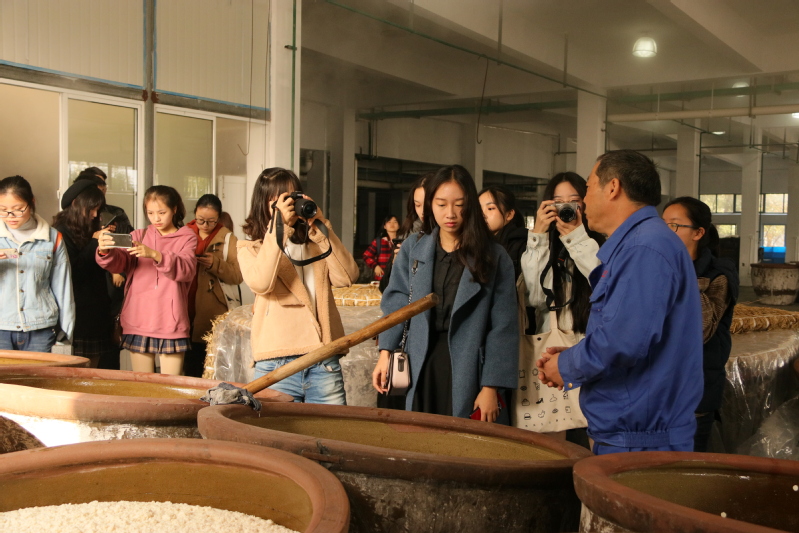 在同里,学员们参观了退思园、三桥、崇祯堂等地。同里古镇简朴无华,素静淡雅,河中船来船去、桥上人来人往,“醇正水乡、旧时江南”,同里的独特和精粹勾勒成一幅如山水诗画般的古镇风情生活图,使得同学们流连忘返。除此之外,学员们还前往素有“天下黄酒第一镇”美誉的吴江桃源镇,跟随国家级酿酒大师的讲解,领略“苏派黄酒”——同里红黄酒的古法酿造的魅力。一方水土孕育一方文化,桃源镇的清雅的酒文化源自于其山清水秀的自然生态,荒天池便是极佳的见证,此座“无人岛”的神秘和幽静也将同学们带入到桃源镇的“世外桃源”意境之中。本次活动旨在通过亲身实践,全面了解吴江古镇改革开放四十年来的发展面貌,用镜头记录古镇的时代变迁,提高传媒学院学子的专业素养和文化积淀。