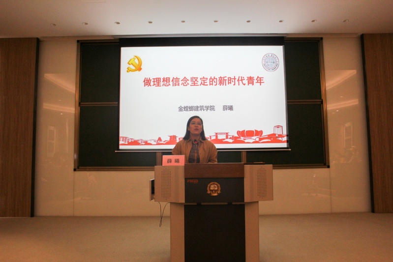 随后,金螳螂建筑学院党委副书记薛曦作辅导报告,主题是《做理想信念坚定的新时代青年》。薛书记以新时代理想信念为主线,从是什么、为什么、如何做三个方面与同学们进行了深入交流。薛书记通过解读两弹一星元勋郭永怀的事迹,首先阐释了“理想信念”是一种深层次的价值观,是价值观的核心形态,新时代青年的理想信念要与时代、国家、社会、人民紧密联系在一起。接着,薛书记从正反两个角度剖析了作为一个新时代青年,为什么要有坚定的理想信念。第一,如今的中国各方面发展迅速,小到老百姓个人的发展水平,大到中国在国际社会不可或缺的影响力,都召唤中国青年不断奋发向上,坚定属于自己的理想信念;第二,虽然我们的祖国日益强大,但内忧外患始终存在,极端的社会贫富差距、复杂的国际竞争环境,都在敦促我们在新时代不断努力学习,报效社会。最后,薛书记号召新时代青年要有最基本的民族自信,坚定社会主义的基本信仰与时代同步伐,与国家共命运,与人民齐奋斗,与事业同发展,牢记使命勇担重任,为实现中国梦,中华民族的伟大复兴而努力。