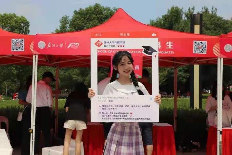 除了为新生提供提贴心的服务,传媒学院还为新生们准备了两份礼物。学院立足自身办学特点,结合学院理念,精心制作了两份礼物。第一份礼物是由学院设计并制作的精美书签,希望新生以书为友,不断进取,开拓新征程;第二份礼物是为新生入学的第一张照片,学院旨在记录下新生入学时面庞,记录开启大学生活前的容颜,赠予新生,成为四年生涯里珍视的留念。