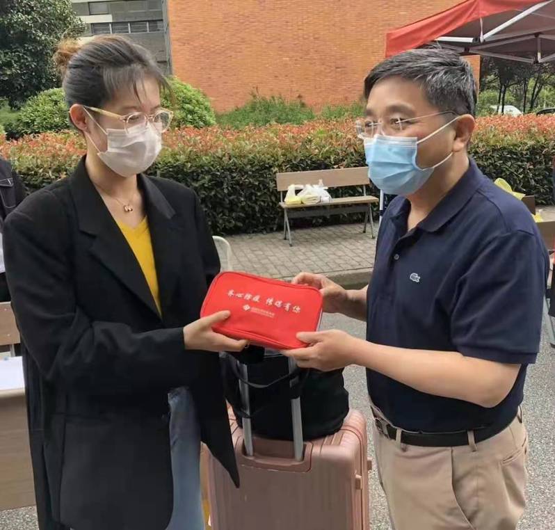 传媒学院学生会在返校前进行调研,了解同学们返校的担忧、需求,并根据调研结果安排了志愿者和相关的推送解答。返校当日,老师与同学们早早来到了校门口,等待同学们的到来。在返校过程中,学生会根据学校要求,进行了信息登记、体温监测等工作,并且为符合要求的返校同学送上了学院提供的关心包,里面包含着免洗洗手液,口罩,以及学院老师亲笔书写的寄语。小小的一份包裹,寄托了老师同学们的浓浓暖意,用点滴行动为同学们接下来的的校园生活保驾护航。