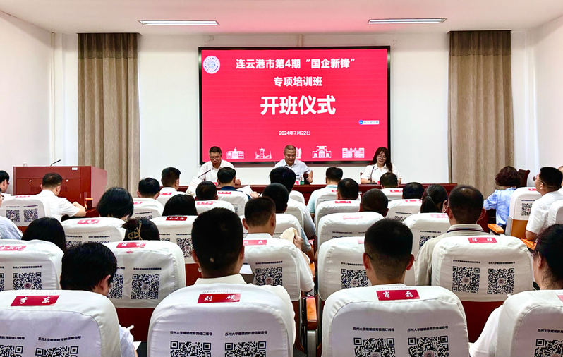 7月22日上午,连云港市第4期“国企新锋”专项培训班在我校天赐庄校区顺利开班。来自连云港市各国企干部约40名学员参加了此次培训。连云港市国资委党群工作处副处长洪科文,连云港市城建控股集团有限公司党委委员、总工程师李启珍,苏州大学管理培训学院副院长黄艳凤出席了此次开班仪式。