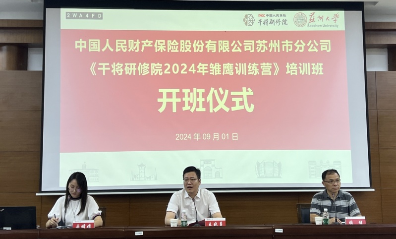 9月1日,中国人民财产保险股份有限公司苏州市分公司《干将研修院2024年雏鹰训练营》培训班在我校顺利举办,来自中国人民财产保险股份有限公司苏州市分公司的82位学员参与此次培训。中国人民财产保险股份有限公司苏州市分公司党委书记、总经理王晓勇,冠军体育下载党委书记张健出席开班仪式。