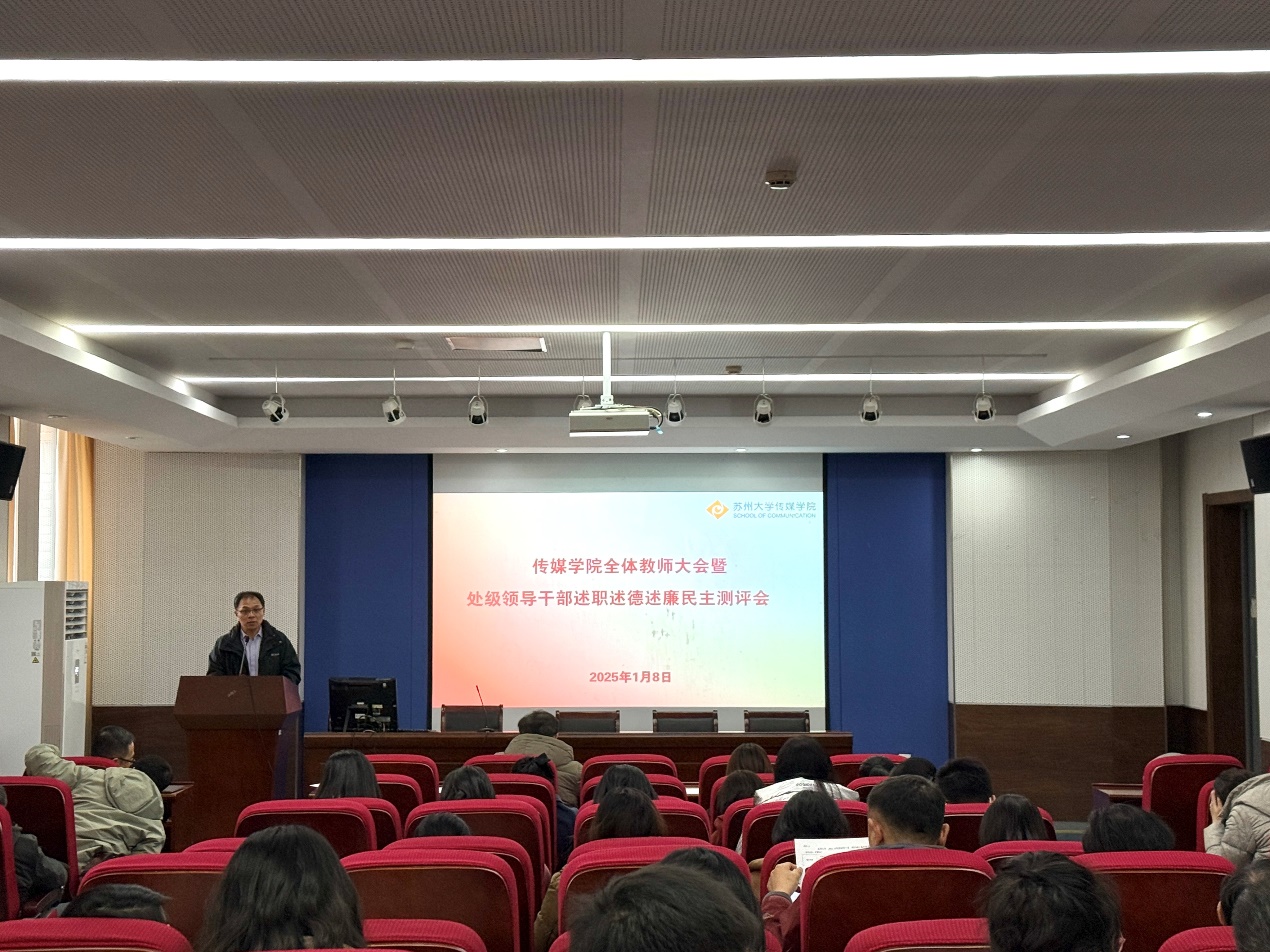 1月8日下午,传媒学院召开全体教师大会暨处级领导干部述职述德述廉民主测评会。学院全体教师出席了本次大会,会议由学院党委书记张健主持。