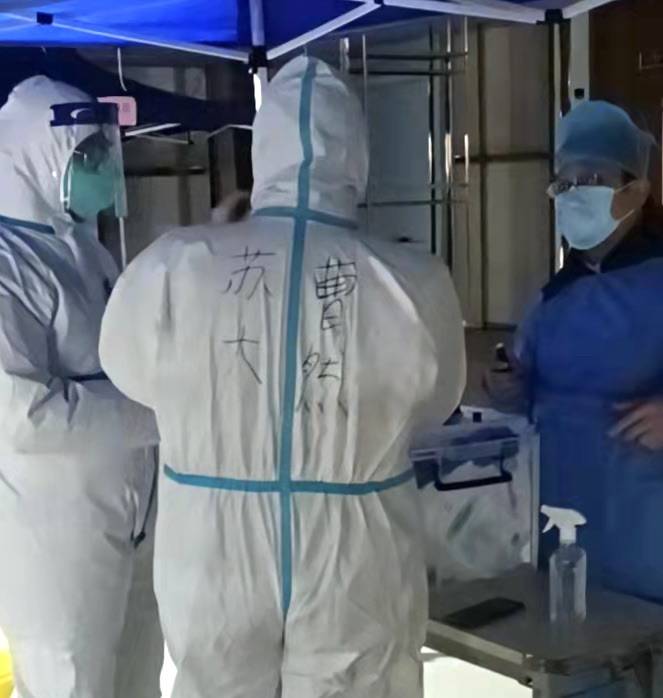 “大白防护穿上以后,整个人被包裹得严严实实的,气呼出来,那个水蒸气会挂在那个面罩上面,不能喝水,不能上厕,也不能吃东西,确实很难熬。”32岁的曹然说,自己从事新闻传播教育工作,平常都是做理论研究,看到很多人都在为苏州抗疫奋战,就报名参加志愿服务。