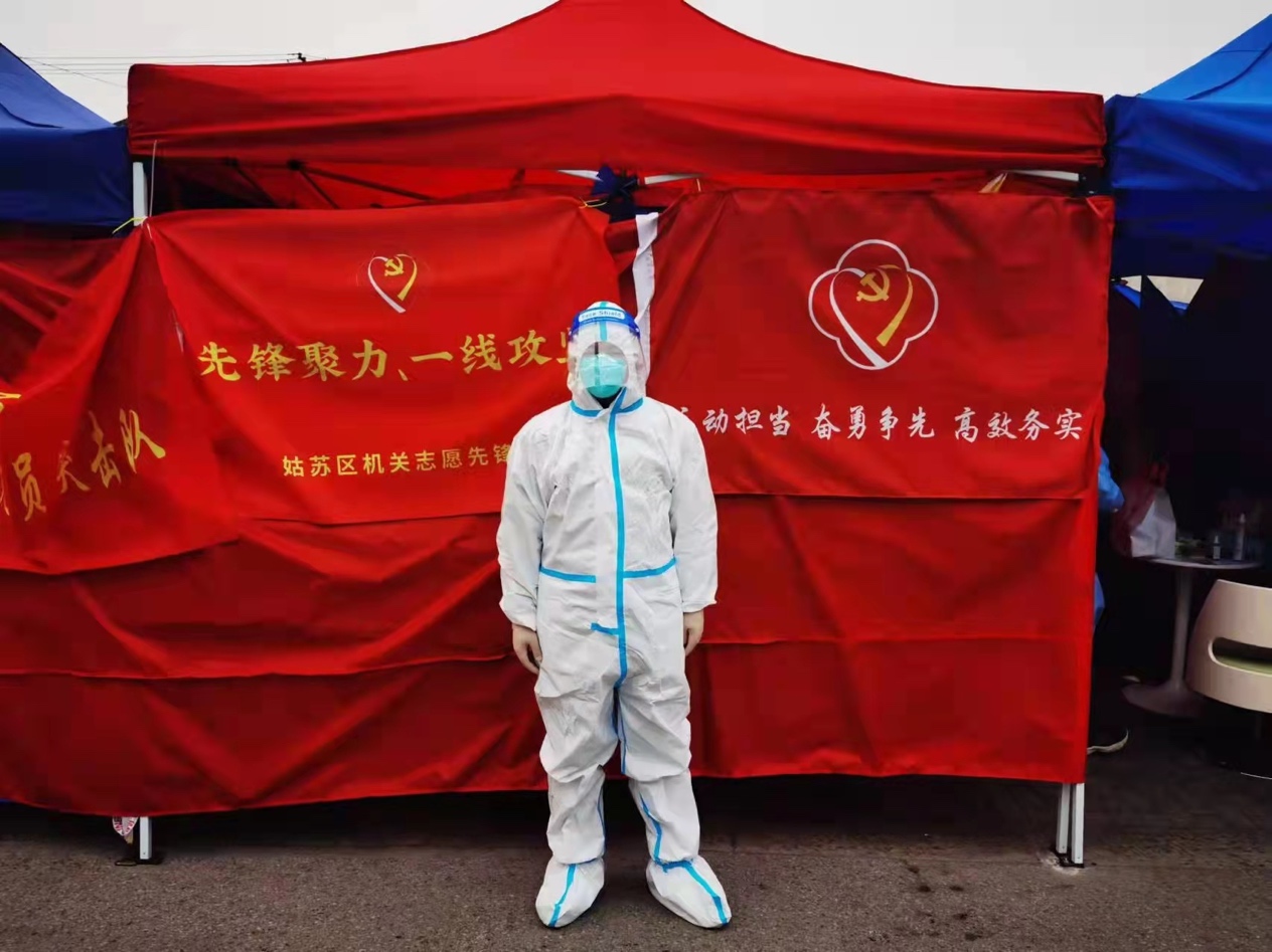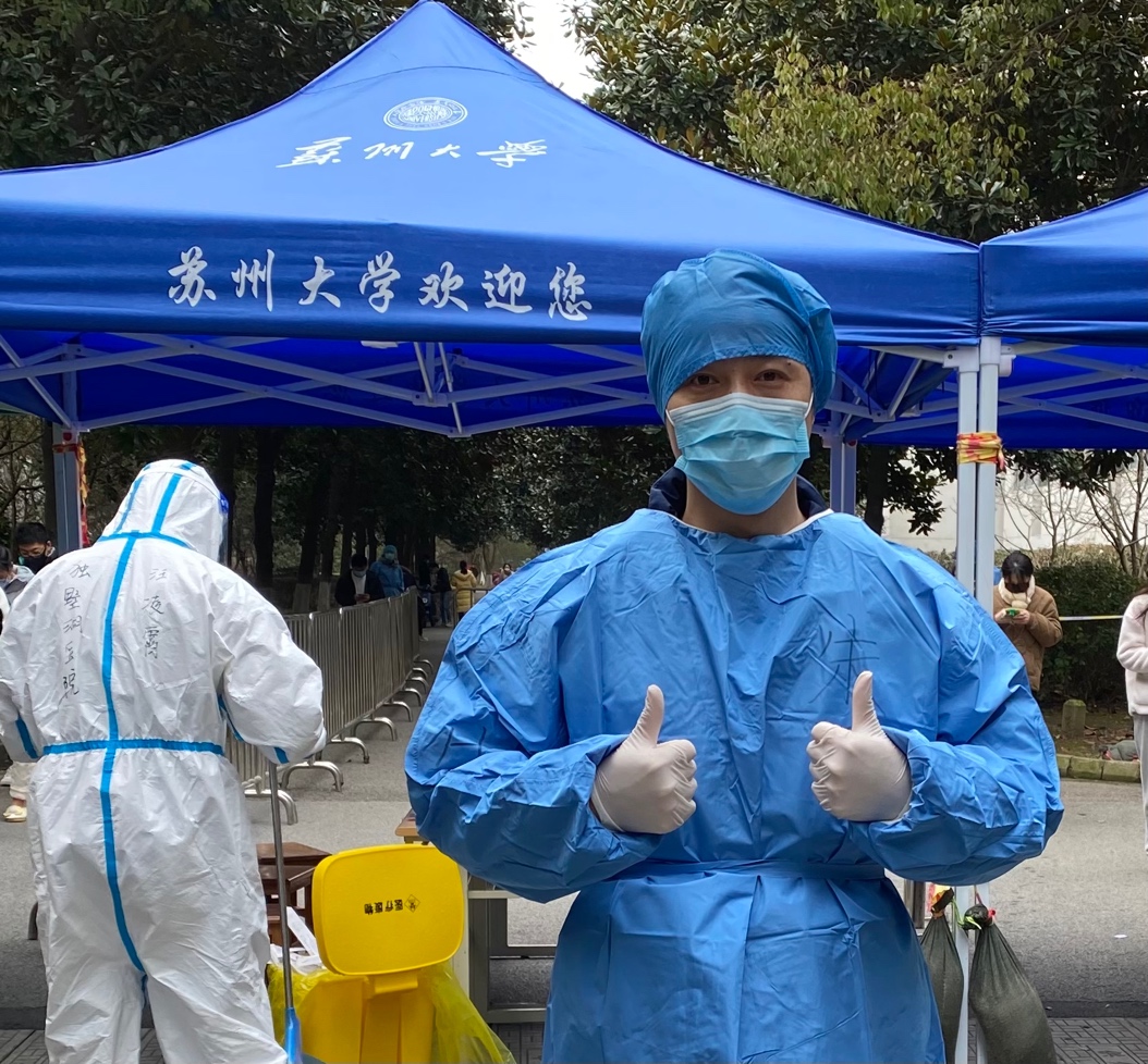 2月20日,传媒学院副院长谷鹏在朋友圈发表了一张配文为“绵薄之力,守护这座城”的图片,感动了许多师生。平日里本应站在讲台上的谷鹏老师在这一特殊时期穿上了防护服,为姑苏区双塔街道葑溪社区的核酸检测工作贡献自己的一份力量。在这次志愿服务工作中,谷鹏老师服务的对象既有日日遇见的邻居、朝夕相处的同事和培养过自己的老师,也有无数共同呼吸这座城市空气的市民百姓。“服务于这座城市,服务于人民,是自己作为一名共产党人‘以人民为中心’的基本担当和根本要求。”通过这次疫情志愿者的服务工作,谷鹏老师对于志愿服务有了更加深刻的体悟。