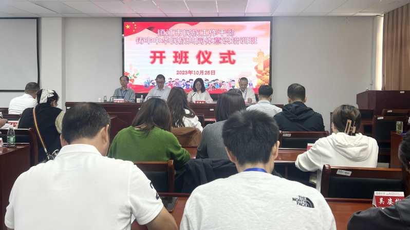 2023年10月25日上午,镇江市民族工作干部铸牢中华民族共同体意识培训班开班仪式在我校天赐庄校区培训中心205教室举行。镇江市委统战部副部长,市民宗局局长季成宾同志、苏州大学管理培训学院副院长黄艳凤同志、镇江市民宗局副局长朱开荣同志、镇江市民族团结进步促进会会长谈德成同志出席此次开班典礼。来自镇江市及各区民宗局领导、民宗科负责人,乡镇(街道)分管民族工作领导,“红石榴家园”主要负责人,市民族团结进步促进会部分会员,共计83人参加了此次开班。