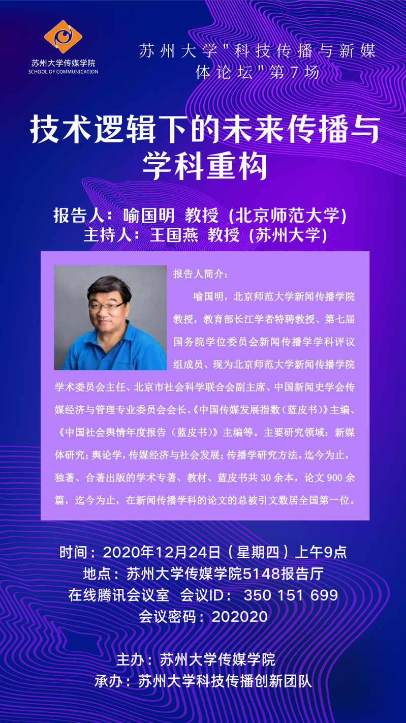 苏州大学“科技传播与新媒体论坛”第7场:技术逻辑下的未来传播与学科重构