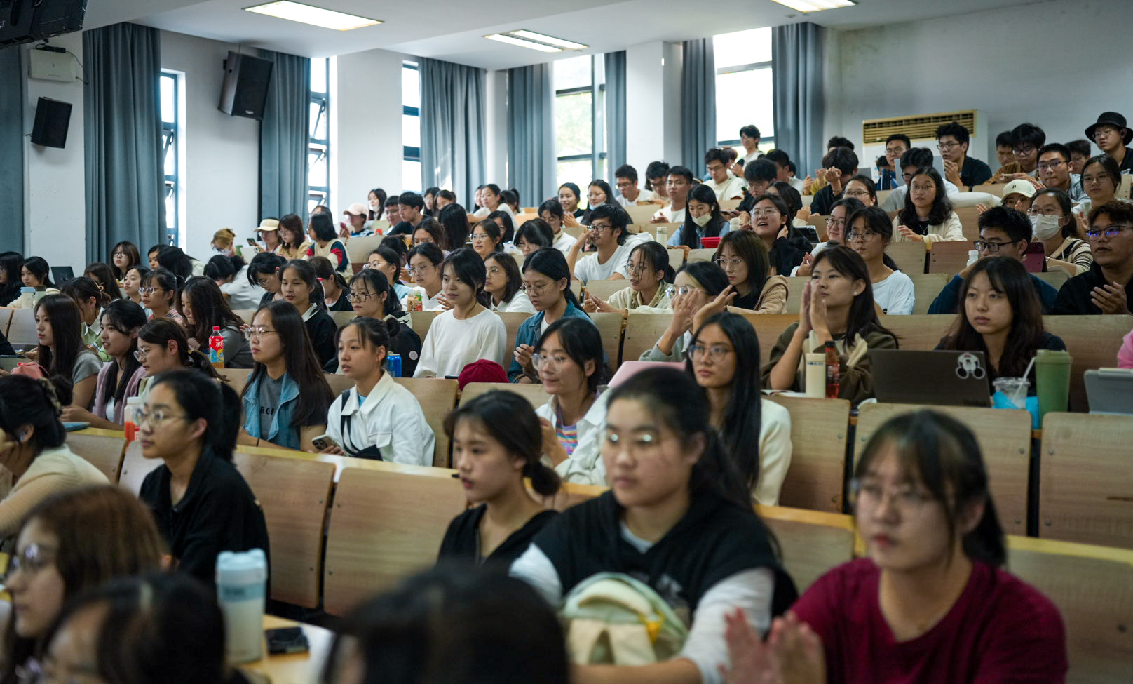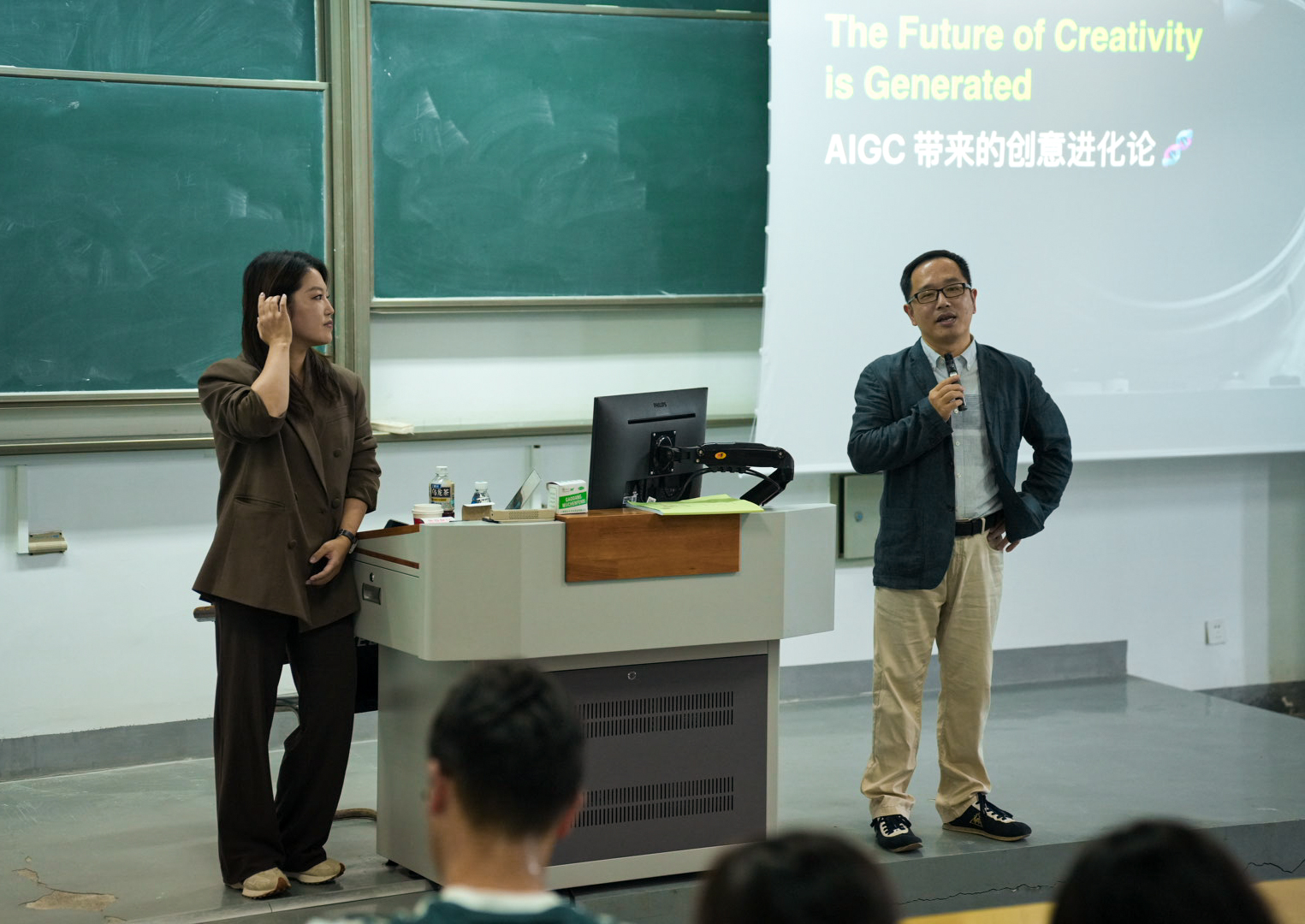 (AIGC带来的创意内容变化)”的主题分享。传媒学院23级本科生、23级硕士生以及苏州城市学院23级书院班约250名同学参加分享会。广告系王静副教授、杨正副教授、潘莉副教授等老师参加分享会。分享会由广告系主任胡明宇教授主持。朱晓绮围绕“广告创意是可以计算的”以及“特赞AIGC典型案例”,与大家分享了AIGC带来的创意内容变化。特赞作为中国领先的数字设计企业,其典型的AIGC典型案例,让师生们大开眼界,师生们与朱晓绮互动也十分踊跃。