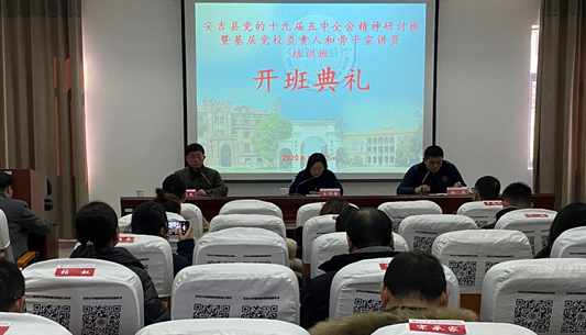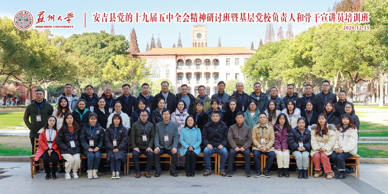 2020年12月15日下午,安吉县党的十九届五中全会精神研讨班暨基层党校负责人和骨干宣讲员培训班在我校培训中心105教室举行开班仪式。安吉县委宣传部副部长王伟静、苏州大学干部培训学院副院长徐冉、苏州大学干部培训学院调研员王苏光出席开班式。