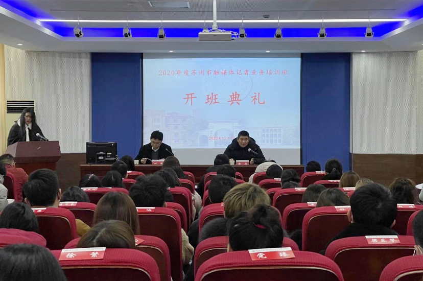 2020年12月17日上午,2020年度苏州市融媒体记者业务培训班在我校独墅湖校区传媒学院5148报告厅举行开班仪式。苏州市政府新闻办副主任刘纯、冠军体育下载副院长徐冉出席开班式。